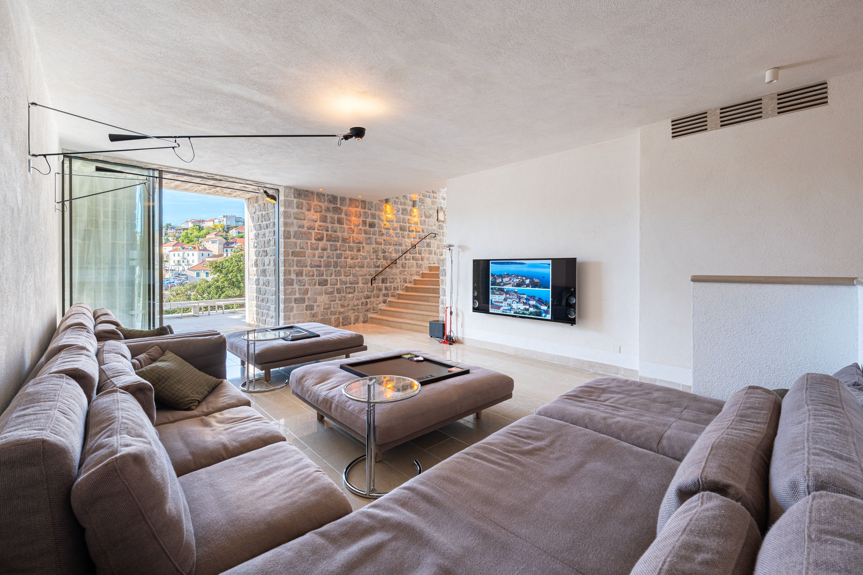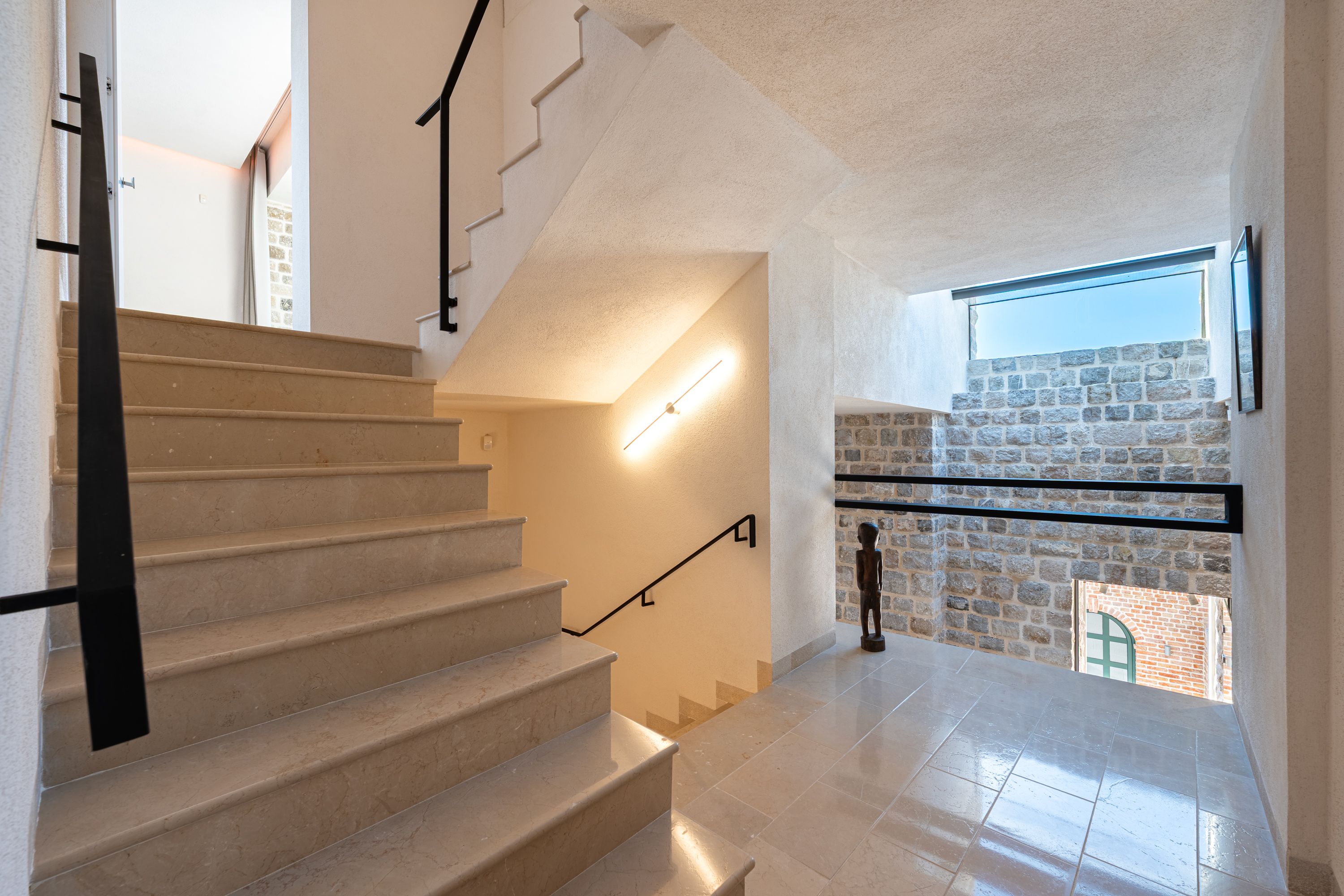The rennovation respected the original façade and morphology, while introducing smart home technology, improved thermal and water insulation, earthquake-proofing, and modern ventilation—upgrades that make the home as functional as it is beautiful.Originally built in the mid-1800s, the house lacked today’s essentials like large windows, insulation, or efficient heating. Now, the west-facing side opens fully to the UNESCO-protected world heritage site Bay of Kotor, merging 65 sqm of interior space with a 60 sqm terrace to create a seamless flow between indoors and out.Its original stone walls, up to two meters thick, offer natural climate control, keeping the house cool in summer and warm in winter thanks to their thermal inertia and ideal east-west orientation.