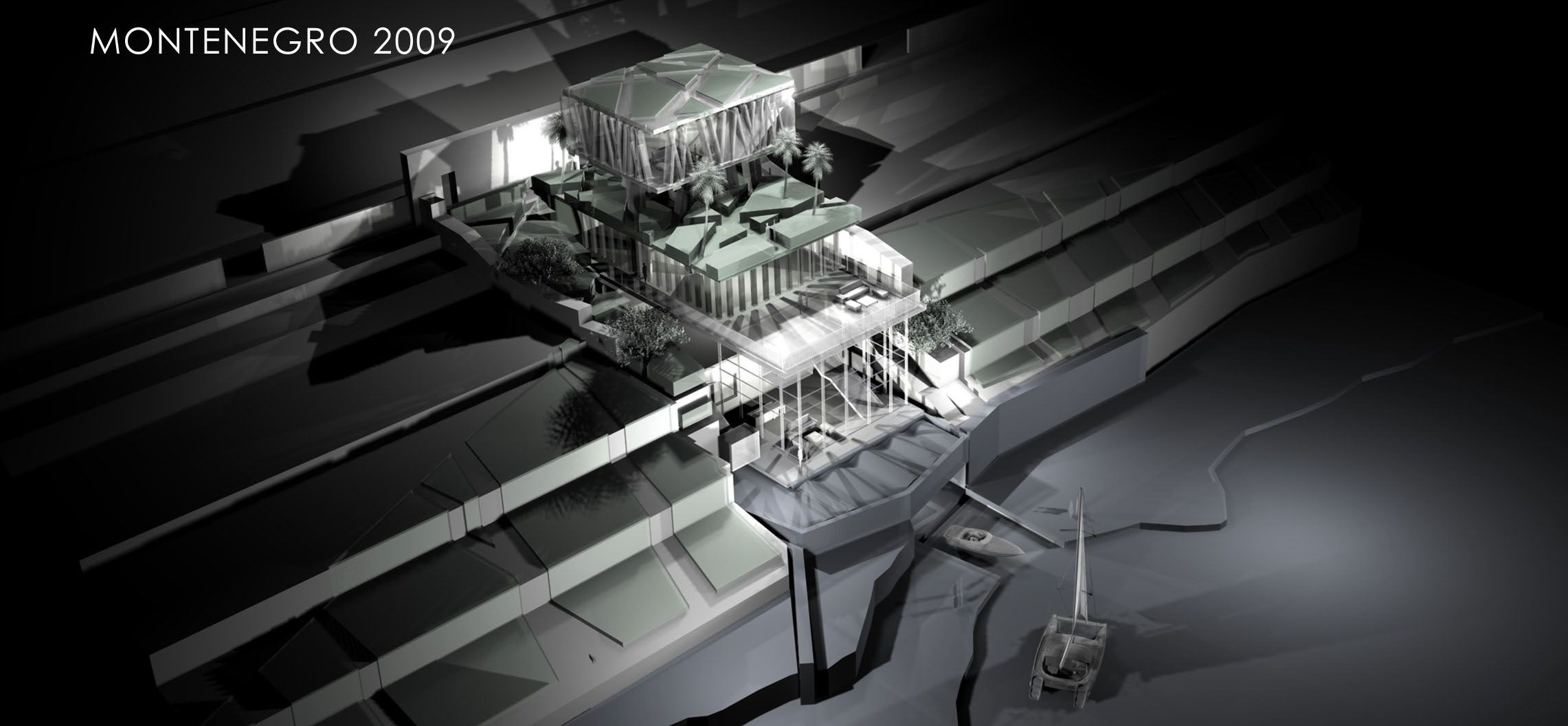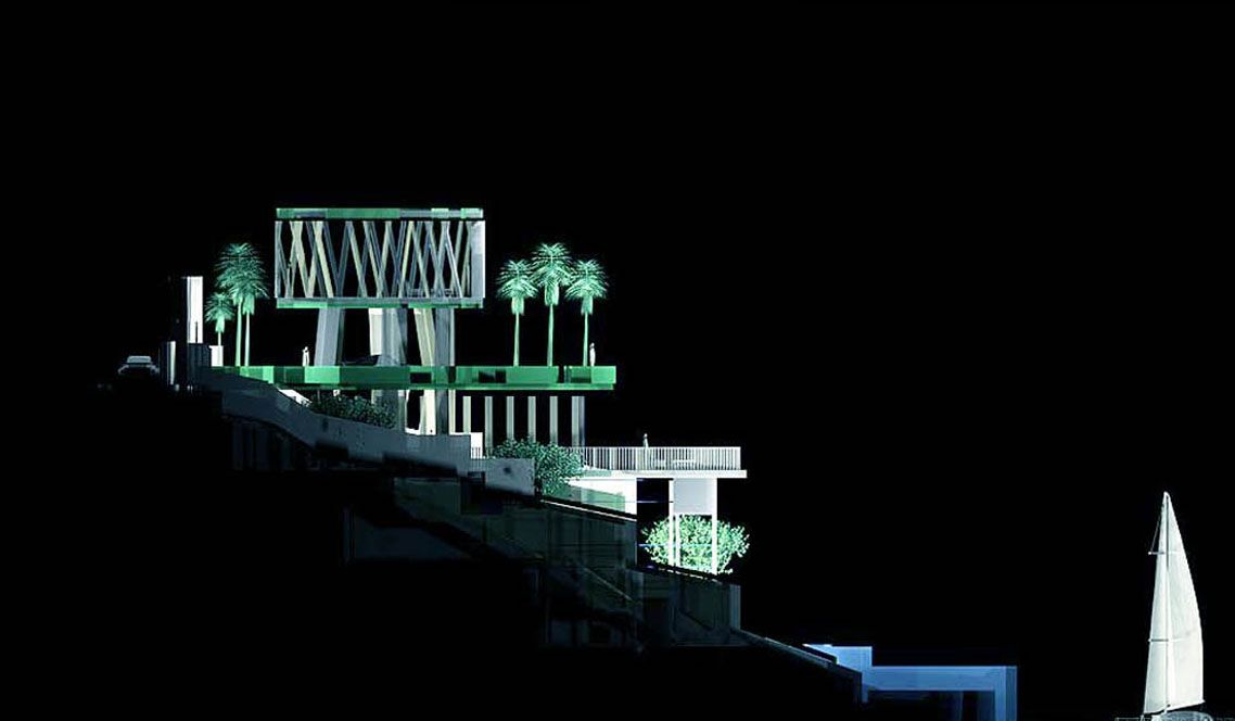 Projekat istražuje delikatnu igru kontrasta — svjetlo i sjenka, čvrsto i prozirno, prirodno i izgrađeno — stvarajući dinamično i imerzivno prostorno iskustvo. Slojevi stakla, čelika i betona artikulišu vertikalnu progresiju od privatnih gornjih nivoa, nudeći intimu i izolovanost, do otvorenih društvenih prostora bliže vodi, podstičući povezivanje i interakciju sa okolinom.