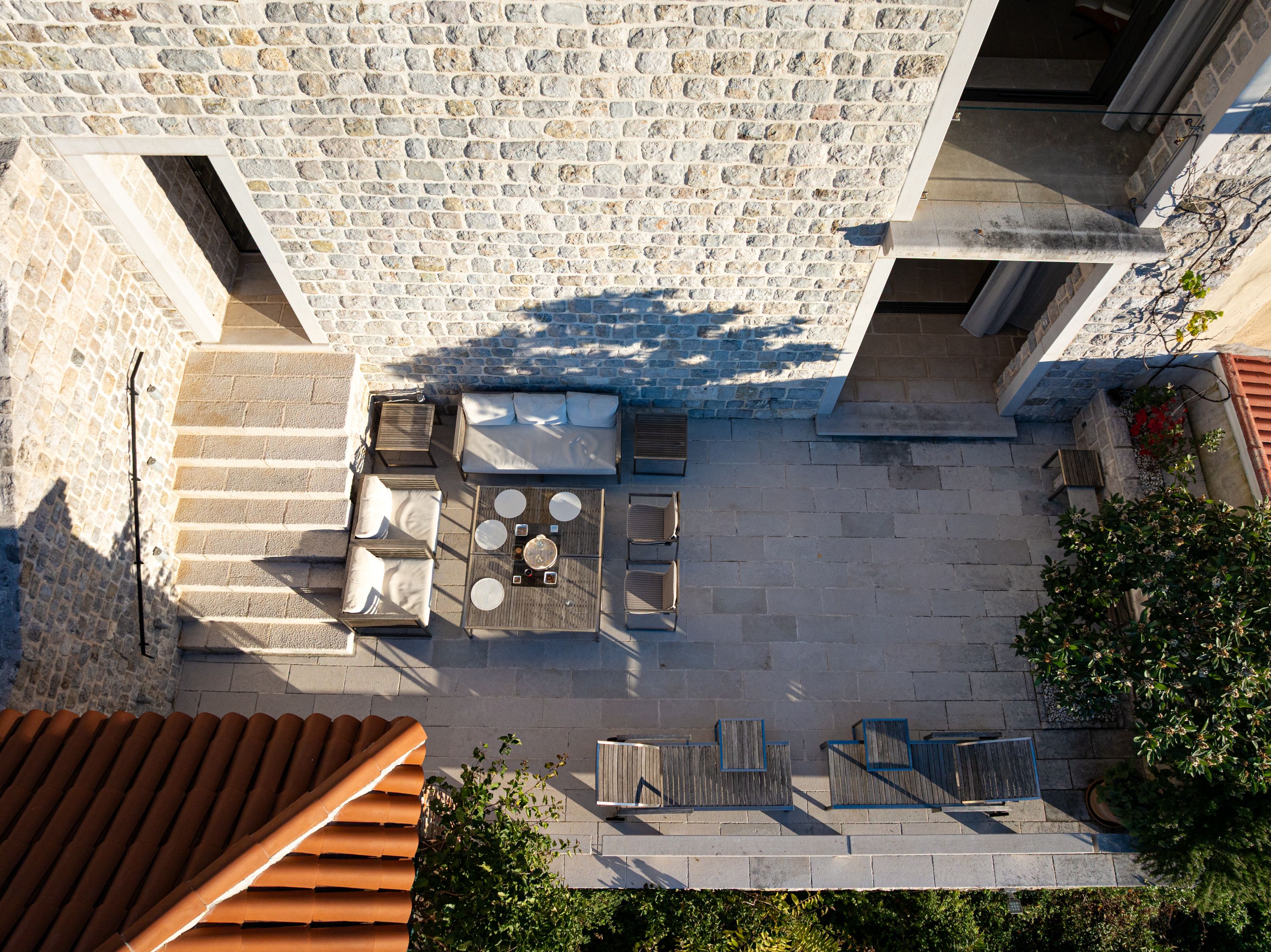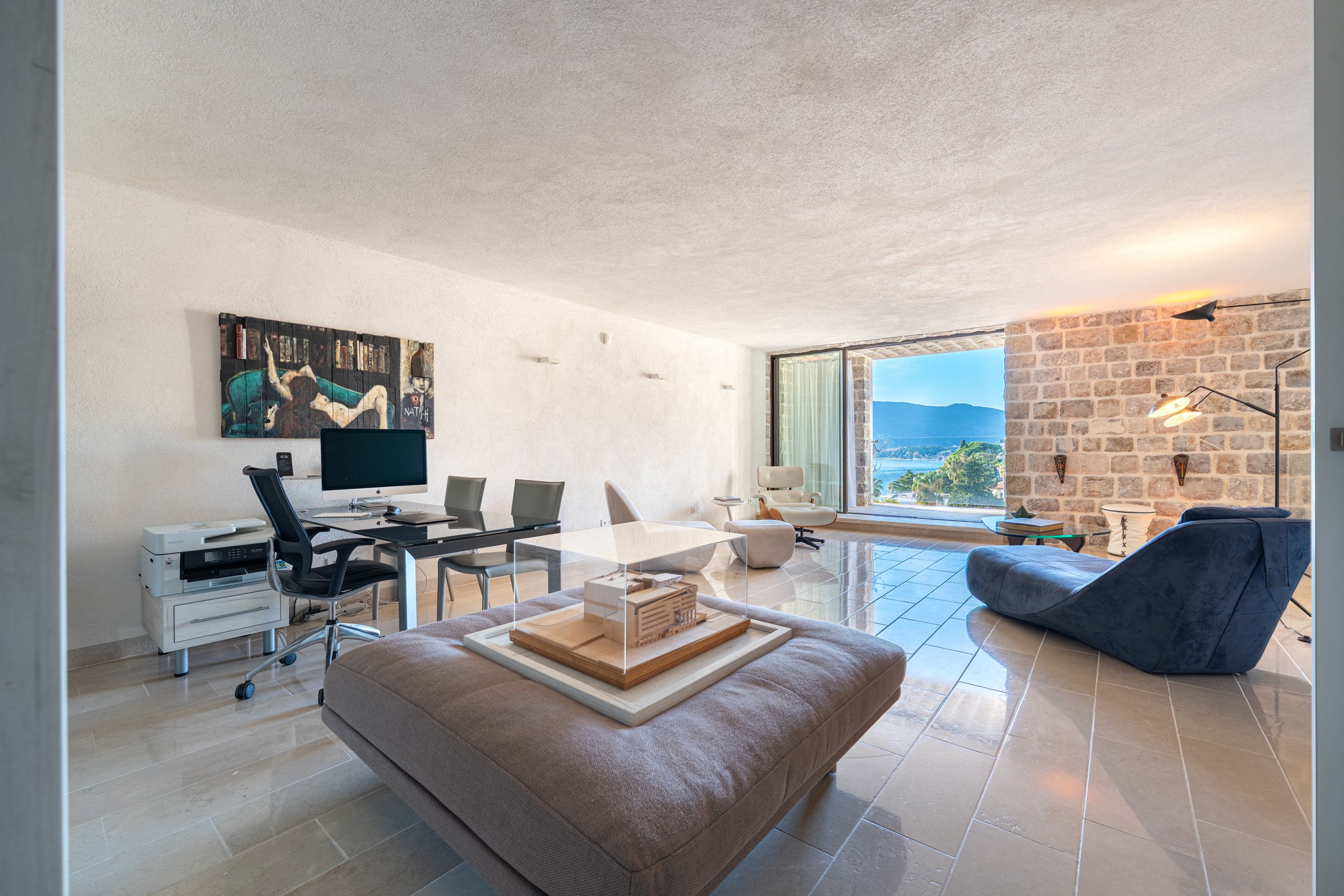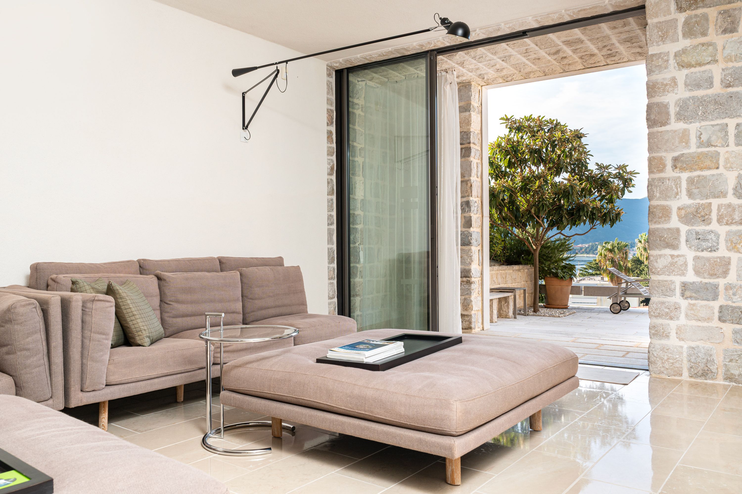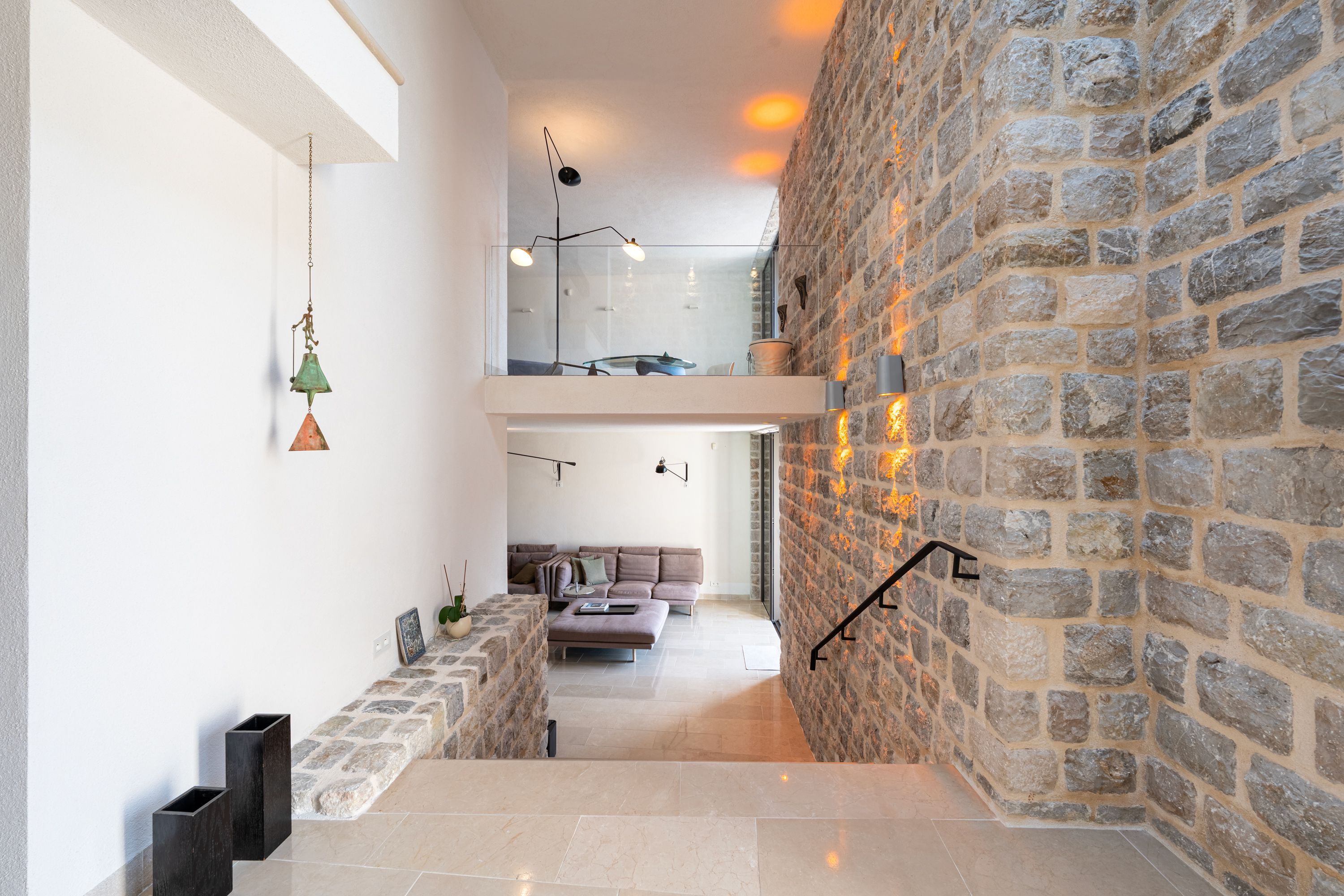 The rennovation respected the original façade and morphology, while introducing smart home technology, improved thermal and water insulation, earthquake-proofing, and modern ventilation—upgrades that make the home as functional as it is beautiful.Originally built in the mid-1800s, the house lacked today’s essentials like large windows, insulation, or efficient heating. Now, the west-facing side opens fully to the UNESCO-protected world heritage site Bay of Kotor, merging 65 sqm of interior space with a 60 sqm terrace to create a seamless flow between indoors and out.Its original stone walls, up to two meters thick, offer natural climate control, keeping the house cool in summer and warm in winter thanks to their thermal inertia and ideal east-west orientation.