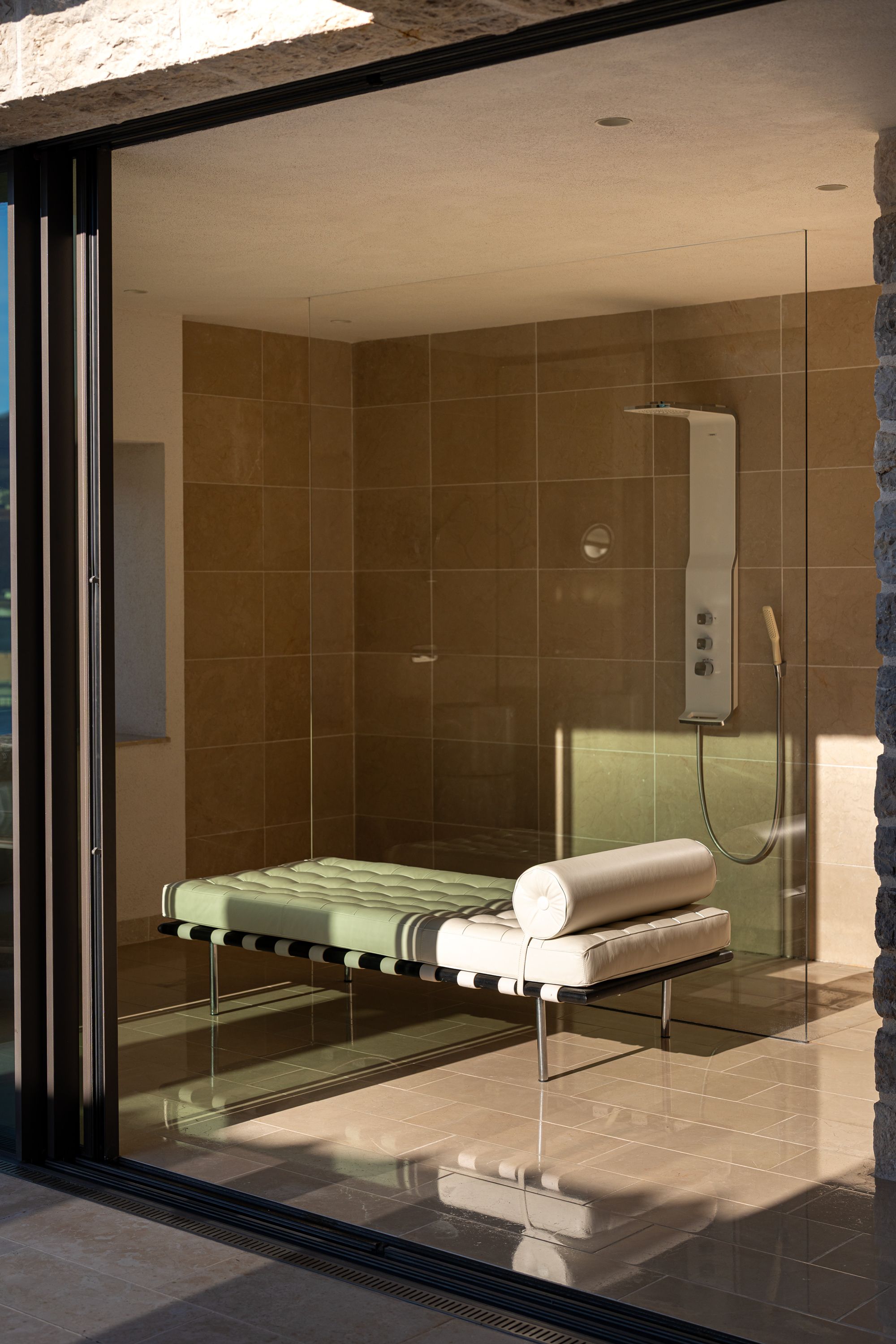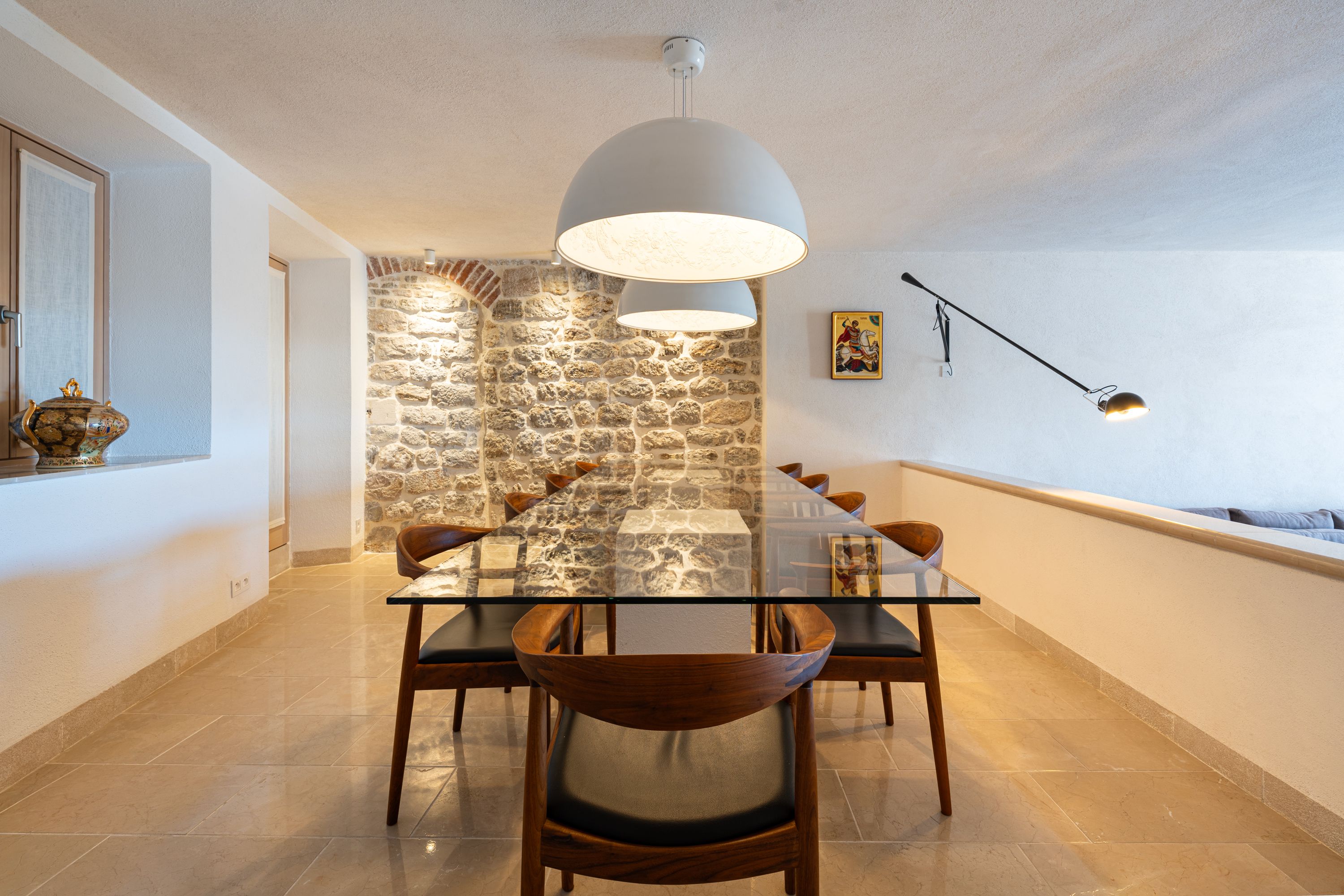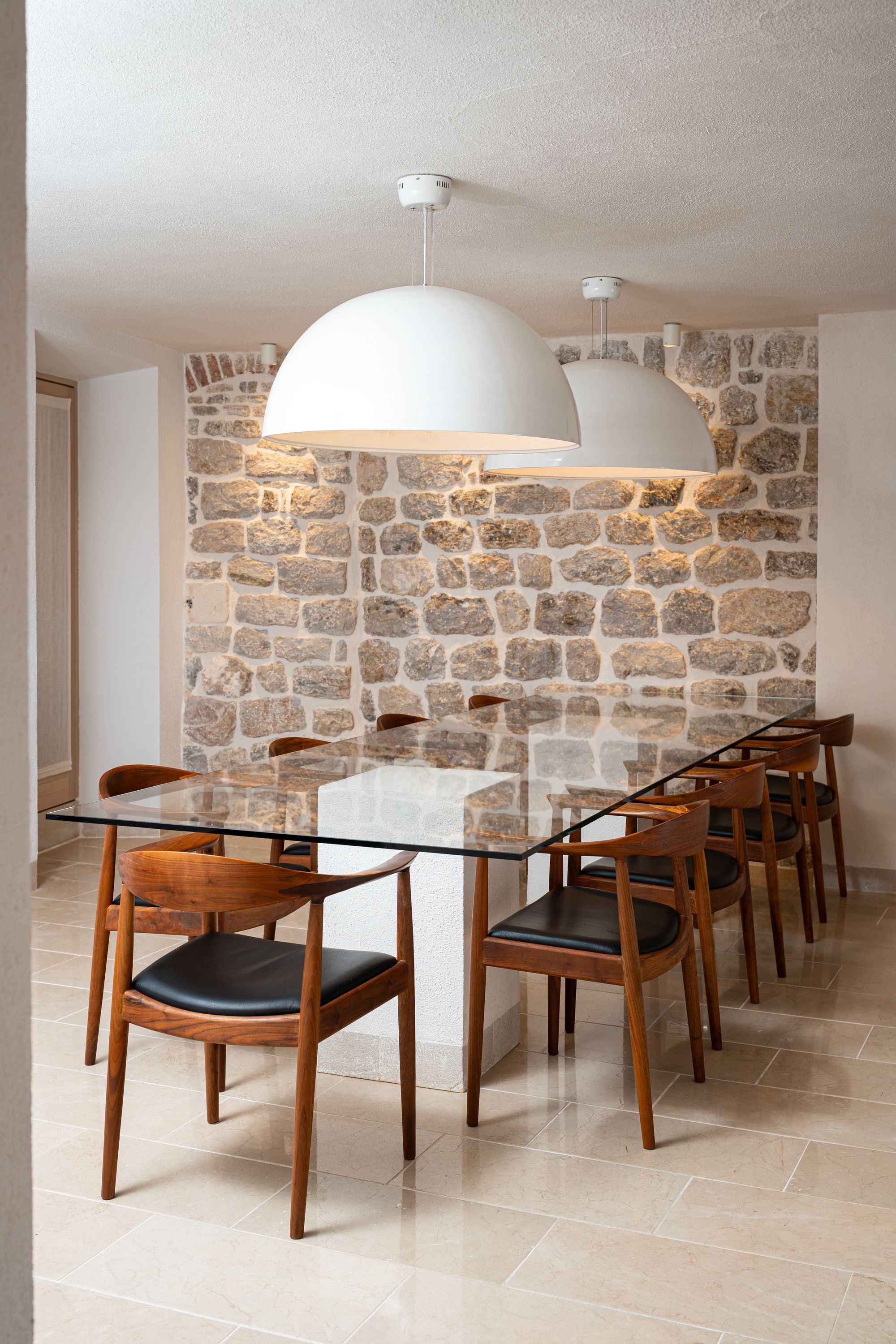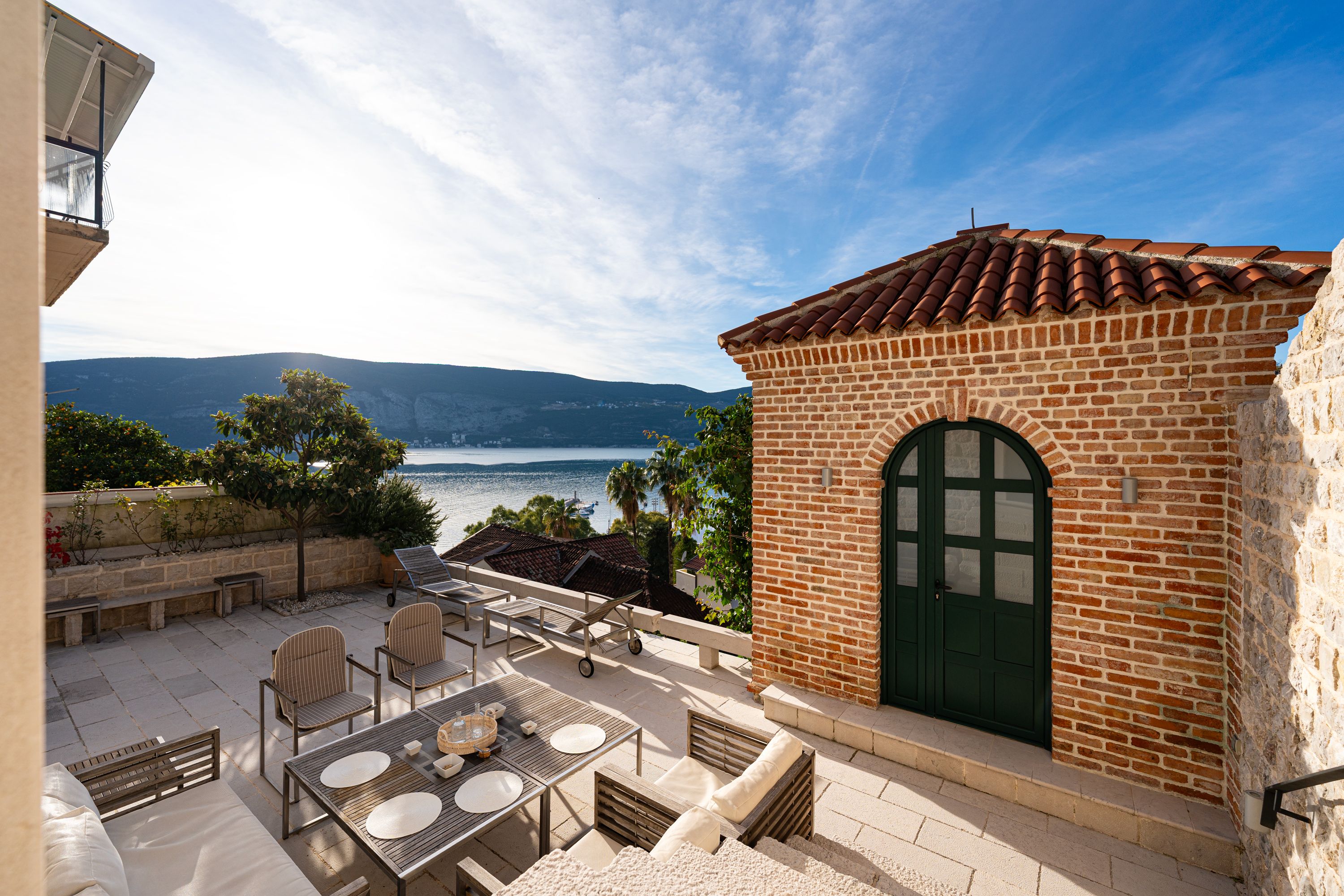The rennovation respected the original façade and morphology, while introducing smart home technology, improved thermal and water insulation, earthquake-proofing, and modern ventilation—upgrades that make the home as functional as it is beautiful.Originally built in the mid-1800s, the house lacked today’s essentials like large windows, insulation, or efficient heating. Now, the west-facing side opens fully to the UNESCO-protected world heritage site Bay of Kotor, merging 65 sqm of interior space with a 60 sqm terrace to create a seamless flow between indoors and out.Its original stone walls, up to two meters thick, offer natural climate control, keeping the house cool in summer and warm in winter thanks to their thermal inertia and ideal east-west orientation.